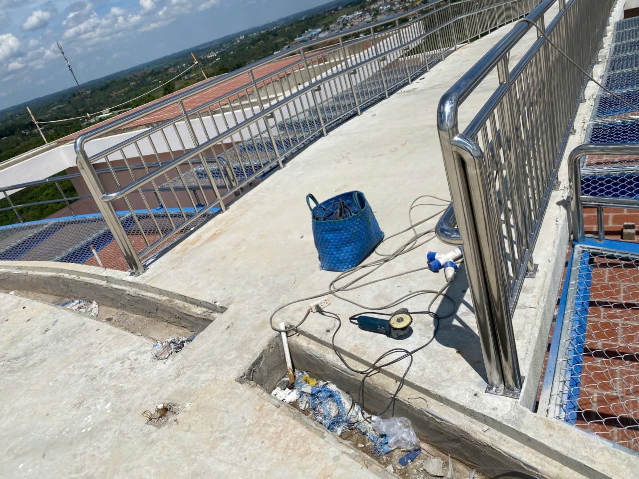 Hệ thống Lan can: Bao gồm lan can cầu thang bộ, lan can kính cường lực tại các khu vực sảnh và hành lang, kết hợp tay vịn Inox chống rỉ sét.
